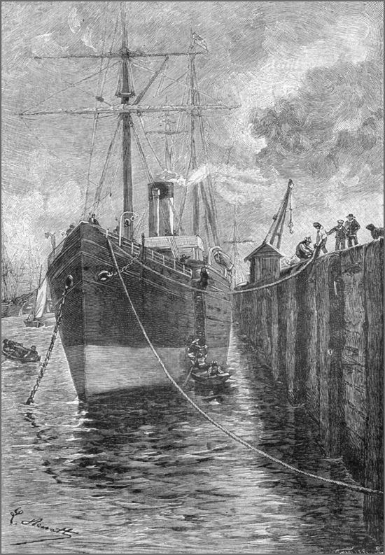 Du reste, on ne voyait à Westport aucun navire appartenant aux autres pays. Des bricks-goélettes, des schooners ou des cutters, quelques barques de pêche, de celles qui travaillent à l'ouvert de la baie, se trouvaient à sec, la marée étant basse. Ces navires, venus de la côte occidentale de l'Écosse avec des chargements de céréales,—ce qui manque le plus au Connaught,—repartiraient sur lest, après avoir livré leur cargaison. Pour rencontrer les bâtiments de grande navigation, il faut aller à Dublin, à Londonderry, à Belfast, 8 à Cork, où font escale les paquebots transatlantiques des lignes de Liverpool et de Londres.