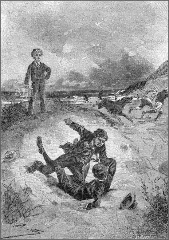 Il laissa donc s'arrêter sa charrette. Le chien affamé, rompu de fatigue, s'étendit sur le sable. Thornpipe tira de son bissac un morceau 9 de pain, quelques pommes de terre et un hareng salé; puis, il se mit à manger, en homme qui en est à son premier repas après une longue étape.