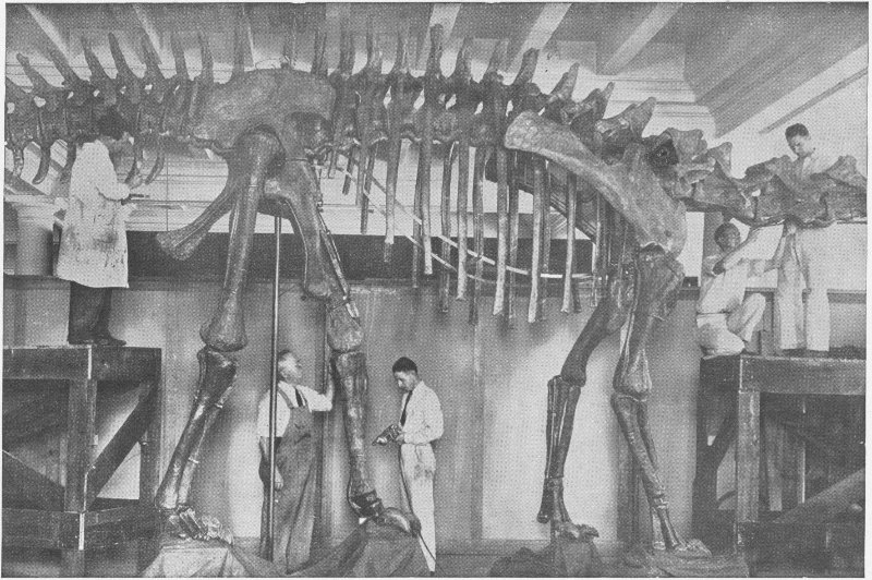 This mammoth, however, had disappeared from southern Europe and for many years its subsequent history remained a mystery. The late Dr. Henry Fairfield Osborn had been engaged in an extensive study of the subject, and when the nearly perfect skeleton from Angus, Nebraska, was brought to his attention he recognized it as being closely related to meridionalis, and considered it to be a record of the migration of that species into North America. Because of minor variations from the typical mammoth of southern Europe he regarded it as a variety or subspecies which had descended from the latter, and the subspecific name, nebrascensis, was added to take care of this situation, using a Latinized form of the name of the State in which the skeleton was found. With the knowledge we now have of these mammoths it becomes apparent that Archidiskodon meridionalis nebrascensis is an ancestor of the imperial mammoth, currently known as Archidiskodon imperator, and not identical with it.