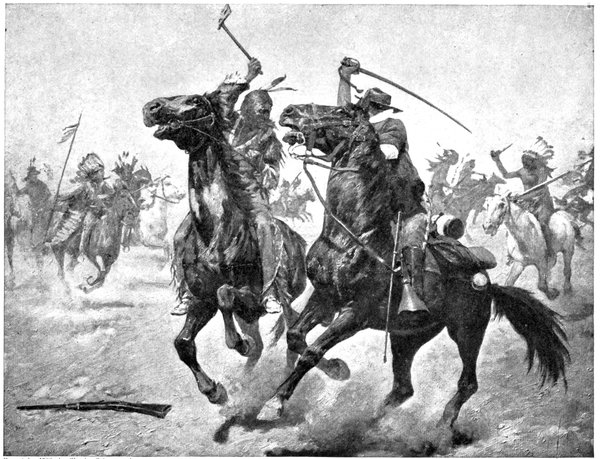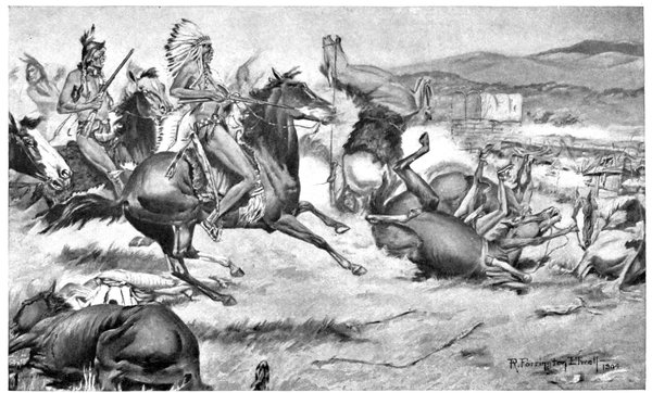 2. For instance:—Every time a body of troops engages in a fight with Indians and the troops are outnumbered, or caught at a disadvantage, and the battle is continued until the troops are slaughtered, such an affair is popularly called a “massacre”; as “The Fetterman Massacre,” “The Custer Massacre.” I believe this to be an unwarranted use of the term. Fetterman and Custer attacked the Indians and fought desperately until they and their men were all killed. I call that a “battle” not a “massacre.” When an Indian war party raided a settlement or overwhelmed a train, or murdered children and women, that, I think, was a “massacre”; but these two instances were not. Consequently, I have carefully refrained from making use of that term in this book, except where it is justifiable. The reader may not agree with me in this position, but I would like to ask if any one ever heard of the “Massacre of Thermopylæ”? The Greeks fought there until all, save one, were killed. The results there were exactly those of the Fetterman affair and the battle of the Little Big Horn, but I have yet to read in history that the Persians “massacred” the Greeks in that famous pass. What is sauce for the Persians is sauce for the Red Men as well.