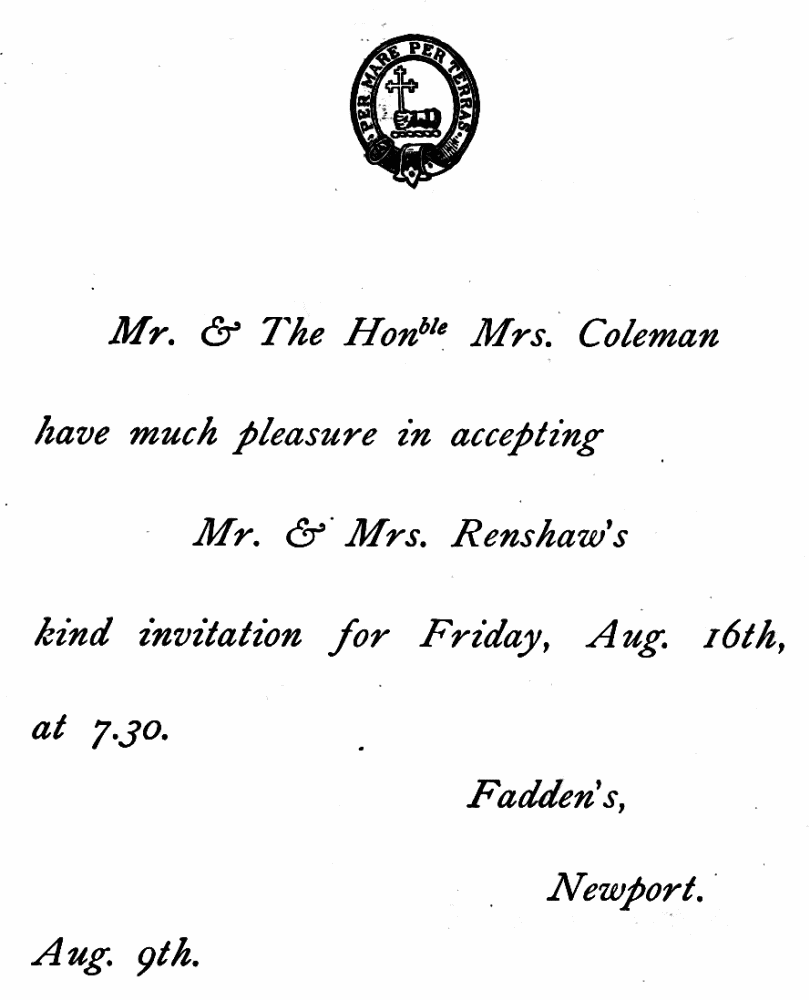 A FORMAL ACCEPTANCE TO A FORMAL INVITATION TO A DINNER.