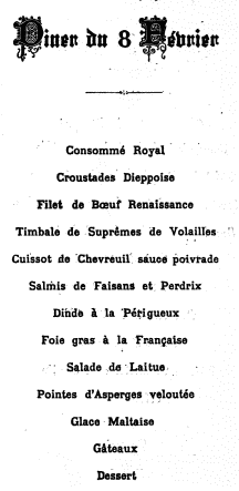 UN MENU AUTHENTIQUE AU CHATEAU DE TUILERIES A L'EMPEREUR NAPOLEON III..
