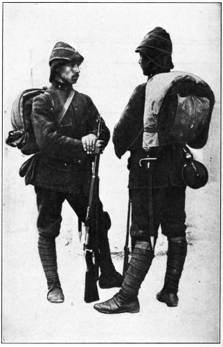 Poor Serbia! As our train sped through her devastated districts I had a picture of what the war had meant to this brave little country. In the last two years this nation had stood alone, practically unassisted by her allies, attempting to stem the rush of Pan-German conquest, just as, for several centuries, she had stood as a bulwark against the onslaughts of the Turks. And she had paid the penalty. Many farms we passed were abandoned, overgrown with weeds and neglected, and the buildings were frequently roofless and{396} sometimes razed to the ground. Whenever we crossed a stream we saw the remains of a dynamited bridge; in all cases the Germans had built new ones to replace those which had been destroyed. We saw many women and children, looking ragged and half starved, but significantly we saw very few men, for all had either been killed or they were in the ranks of Serbia’s still existing and valiant little army. All this time trains full of German soldiers were passing us or standing on the switches at the stations where we slowed up, a sufficient explanation for all the misery and devastation we saw on our way.{397}