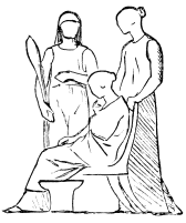 There is another garment which was sometimes worn by the Greek women over the long tunic. This was a sleeveless short tunic much ornamented, but without a girdle. We have many examples of this dress in the figures on the Greek vases. I am told that modern milliners call this kind of thing a peplum, but this is quite a misnomer. A peplum or peplon is, as we have seen, an ample shawl.