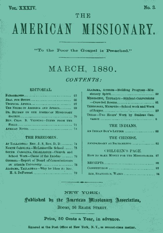 Title: The American Missionary — Volume 34, No. 3, March, 1880