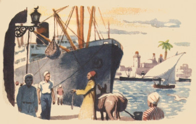 As the great engine deep down in Jim’s ship pushes her through the calm blue water of the Mediterranean Sea, he stands watch in the bow. Now he begins to catch sight of small sailing vessels. When his ship enters the port of Alexandria at the mouth of the Nile River in Egypt, he is close to the place where much of the story of ships began.{32}