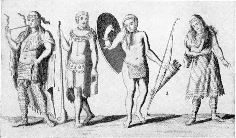 Indian Costumes, From Lafitau. 1, Iroquois; 2, Algonquin