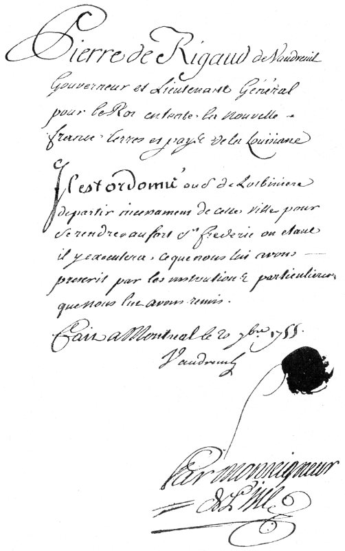 “I was so much occupied last year at the departure of the last ships that it was not possible for me to render you an account of the St. Frederic campaign, which M. de Vaudreuil ordered me to begin immediately after M. de Dieskau’s affair. I left with orders to examine the Carillon Point ... where the waters of the Grande Baye and of Lake St. Sacrement meet. At this point is the head of the navigation of Lake Champlain. M. de Vaudreuil feared with reason that, the enemy gaining possession of it, it would be very difficult for us to dislodge him, and that being solidly established there, [and we] would be exposed to see him appear in the midst of our settlements at the moment we least expected, it being possible for him to make during winter all necessary preparations to operate in the spring.