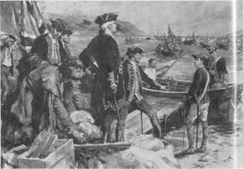In July, 1758, this great army, great for its day and place, left Fort William Henry in hundreds of batteaux and whale boats to attack Fort Carillon. It must have been an extraordinarily beautiful sight, that vast fleet of little boats filled with the Red Coats and the plaids of Highlanders. Early in the morning of July 6th the army landed on what is now known as Howe’s Cove at the northern end of Lake George. The army immediately advanced in three columns but was soon lost in the dense forest which then covered the whole country. An advance party of French under the Sieur de Trepezec had been watching the landing from what the French called Mount Pelee, but which is now called Roger’s Rock. In trying to return to the Fort they had also lost their way and met one of the advancing columns, commanded by George Augustus, Viscount Howe, a grandson of George the First of England. At the first fire Lord Howe was killed and with his death the heart went out of the army. He was the real leader of the expedition. Captain Monypenny, his aide, reported his death in the following letter: