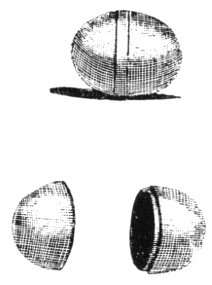 “The little bronze flint and tinder box illustrated, was found in 1888 by the present Museum Director, then a small boy. His brother dislodged a stone while they were climbing around the fort. Under the stone was this box with flint and tinder in it. Bronze and of French design, it must have belonged to some important officer, probably Montcalm de Levis, Bougainville or Bourlamacque. The busts represent Cupid and Psyche; the faces are extraordinarily beautiful and expressive. The box measures 2¼ by 1¼ inches.