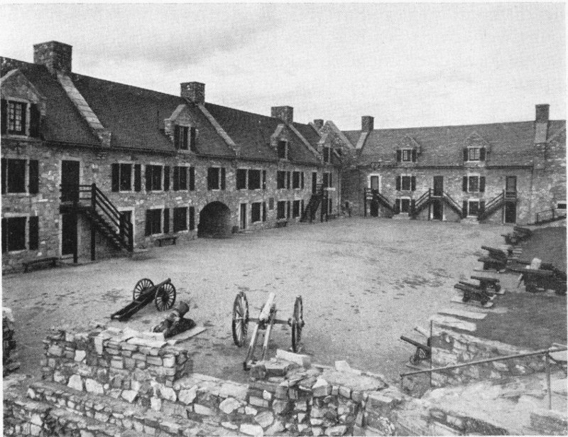 The guns which De Lotbiniere mounted on the Fort were mostly from Crown Point and Montreal but some were brought from Fort William Henry in 1757 when Montcalm captured that fort from Lieut. Col. Munro. It was after Munro’s surrender that the famous massacre of Fort William Henry occurred. The British garrison was marching unarmed to Fort Edward when it was attacked by Montcalm’s Indians. The French officers did their best to protect the garrison but many were slain.