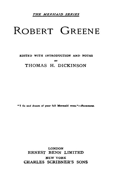 "Why should art answer for the infirmities of manners?" asks Thomas Nash in defending the memory of his dead comrade, Robert Greene, against the attacks of Gabriel Harvey. Some such consideration as this has been needed to rescue Greene's fame from the uncritical hostility of later times. It has been the misfortune of the man to be remembered by posterity chiefly through adverse personal documents. The assaults of a frustrate and dying man on a successful rival like curses soon turned home to roost. Gabriel Harvey, the Kenrick of his day, crowned the dead poet with bays more pathetic than the sordid wreath placed by Isam's hand. And to complete the tale of disfavour Greene himself tells his own story with a morbid self-consciousness only exceeding Bunyan's, and a thrifty purpose to turn even his sins to pence. Though during Greene's life and after his death circumstances were unmeet to dispassionate biography, it may promote the calmer mood of a later age to inquire into the conditions of his disordered career and the sources of his unique genius. "Debt and deadly sin, who is not subject to?" cries Nash. "With any notorious crime I never knew him tainted." Nash refers Greene back to human nature. With Nash, at the best but lukewarm, and with Symonds, no partisan of Greene's, one believes that circumstances as well as natural frailty made Greene what he came[Pg x] to be. And of truth he must be represented as no isolated figure, but as a man of his times, frail, no doubt, but frail with Marlowe and Peele, versatile with Sidney and Raleigh, reflective with Spenser, and lusty with Shakespeare.