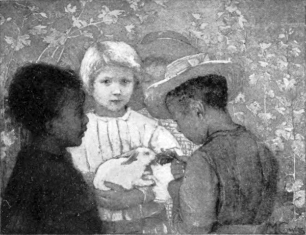 The life about the place was amazing. There were the busy children playing in groups, the boys of the family mingling with the little darkies as freely as any other young animals, and forming the associations which tempered slavery and made the relation one not to be understood save by those who saw it. There they were, stooping down and jumping up; turning and twisting, their heads close together, like chickens over an “invisible repast,” their active bodies always in motion: busy over their little matters with that ceaseless energy of boyhood which could move the world could it but be concentrated and conserved. They were all over the place; in the orchard robbing birds’ nests, getting into wild excitement over catbirds, which they ruthlessly murdered because they “called snakes”; in spring and summer fishing or “washing” in the creek, riding the plough-horses to and from the fields, running the calves and colts, and being as mischievous as the young mules they chased.