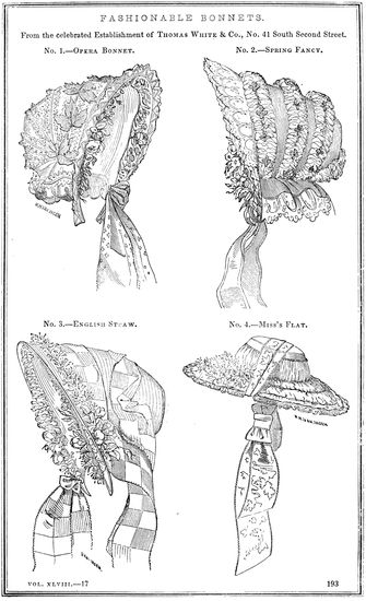 | Bonnets, from Thomas White & Co., | 193, 283 |