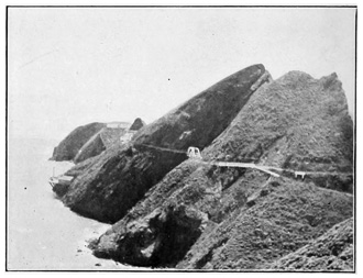 West of Tomales Bay a long narrow neck of land stretches far out into the Pacific. Though somewhat barren in appearance, owing to the dearth of trees and the abundance of low, tangled sagebrush, the fact that grass grows the entire year on its slopes makes Point Reyes the famous dairying center of Marin.