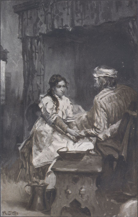 Bald fand er das gesuchte Haus und setzte den ihm bezeichneten Türklopfer in laut schallende Bewegung. Eine Magd öffnete und führte den friedlichen Gottesmann ohne Zögern und Bedenken die Treppe hinauf zu dem Hausherrn.