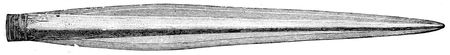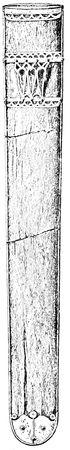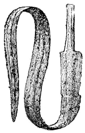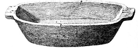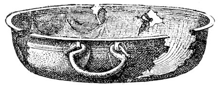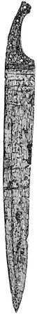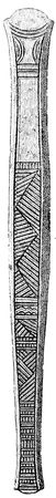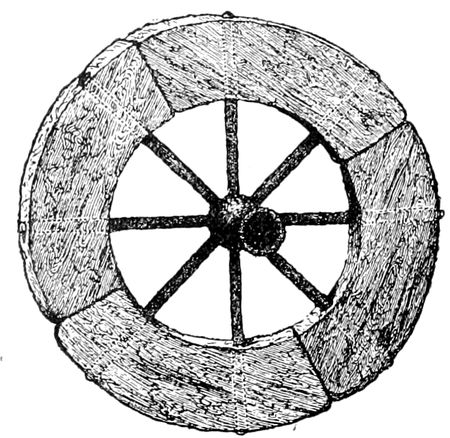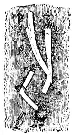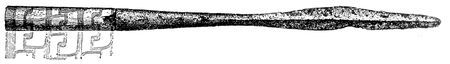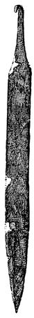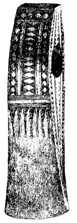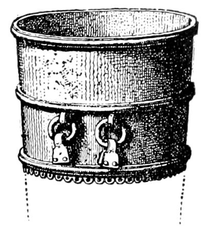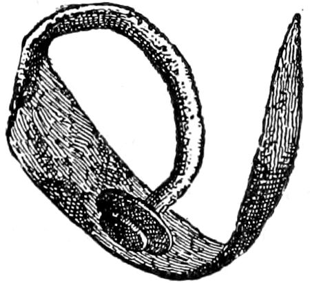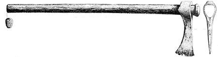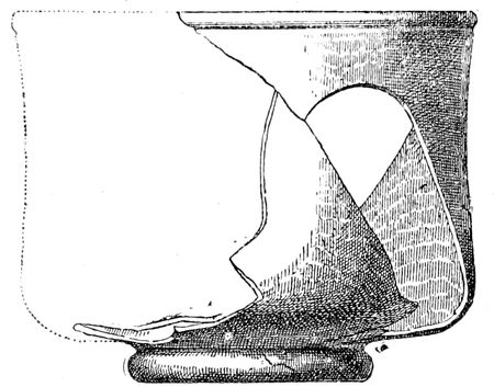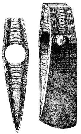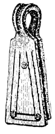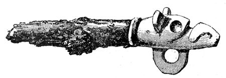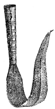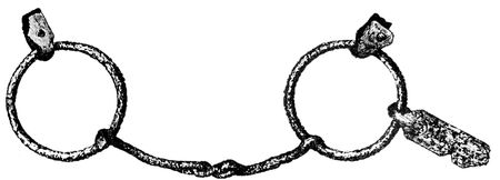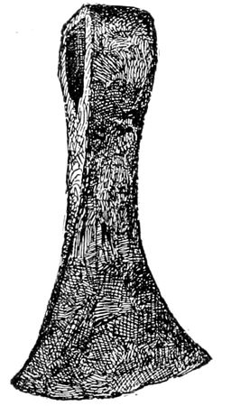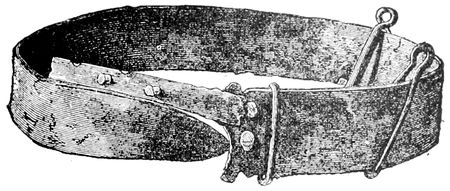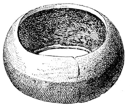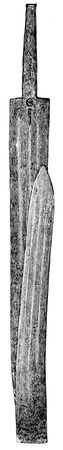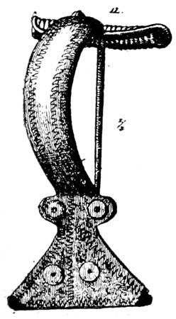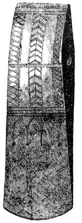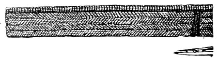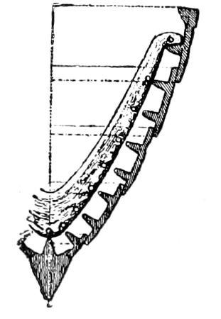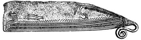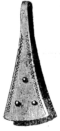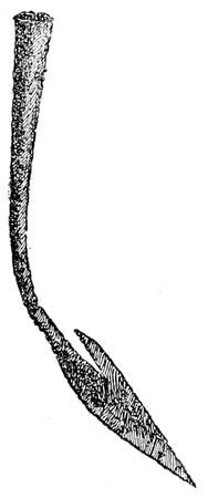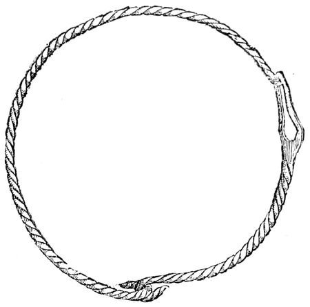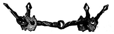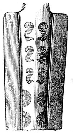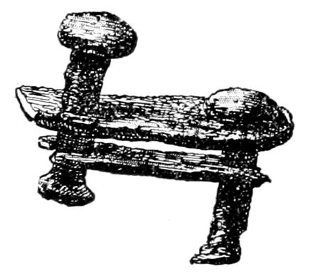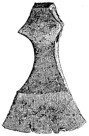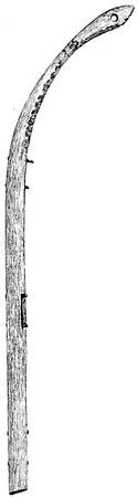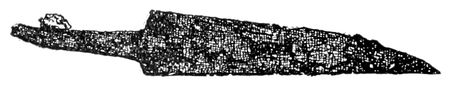 Judging from the number of holes seen, which were about 18 inches below the gunwale, it carried sixteen oars, and was consequently a sixteen-seater. Its preservation is due to the blue clay in which it was partly embedded, the upper part being eaten away owing to the clay being mixed with sand, thus allowing the rain and air to penetrate. It is entirely of oak, clinker built, calked with cows’ hair spun in a sort of cord.