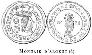 | Édit du Sénat de Gênes.—Réponse de Théodore.—Le roi dans le Nebbio et en Balagne.—Tribulations de Costa.—Frappe de la monnaie. | ||