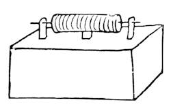 Later a shallow rectangular wooden box was substituted for the violin, and the spiral was laid horizontally upon it (Fig. 20). The date when this modification was made was either at the end of 1861 or the early spring of 1862. A cigar-box was the actual sounding-box, and the needle was supported within the coil, but not touching it, with its ends resting upon two wooden bridges.