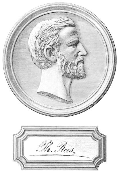 In the present century, when so many facilities exist for the diffusion of knowledge, and when every new discovery and invention is eagerly welcomed and immediately noised abroad to every country of the globe, it is hard to believe that the inventor of an instrument of the highest scientific value, destined to play an important part in social and commercial life, should have been suffered to live and die in unrecognised obscurity. Still harder is it to believe that his invention passed into almost complete oblivion, unacknowledged by most of the leading scientific men of his day and generation. But hardest of all is it to believe that when at last attempts were made to give to him, whose name and fame had thus been permitted to languish, the credit of the splendid researches in which he wore his life away, those attempts could be met on the one hand by an almost complete apathy, and on the other by a chorus of denial, not only that any such invention was made, but that the inventor had ever intended to invent anything of the kind. Yet nothing less than this has happened. Philipp Reis, the inventor of the Telephone, the first to scheme, and carry out into execution, an instrument for conveying to a distance by means of electric currents the tones of human speech and human song, is no longer amongst the living. He cannot[36] reclaim for himself the honours that have been showered upon the heads of others, who, however worthy of those honours they were—none will deny that—were only not the first to deserve them. In his quiet grave, in the obscurity of the German village where his daily work was done, he sleeps undisturbed by the strife of tongues. To him it matters nothing now, whether his genius be recognised and his invention applauded, or whether ignorance, and calumny, and envy, alike decry both. Nevertheless, the memory of him and of his work will live, and will descend to posterity as of one whom his own generation knew not, whose peculiar greatness passed unheeded save by a chosen few. Nor will posterity be the less ready to accord honour to him who in his own day could not even obtain justice. Yet something more than a mere historic justice for the poor schoolmaster of Friedrichsdorf does the world owe; justice to the great invention that is now imperishably associated with his name: justice to the struggling family whom, instead of enriching, it impoverished; and, not least, the justice of patience, whilst the story of his life and work, and the words he himself has written thereupon, are unfolded.