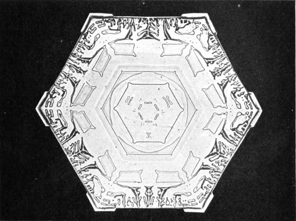 129. Discoidal ice crystal. Second stage in which crimps begin to appear around the edge of disc
