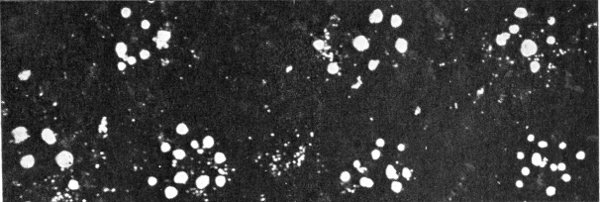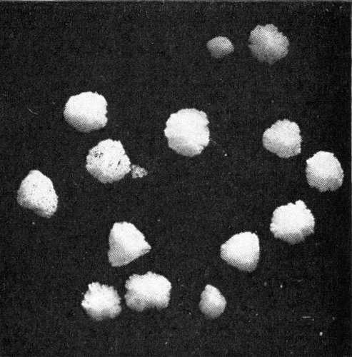 Hundreds of samples of raindrop impressions have recently been secured, and the method employed to collect and photograph them is most unique. To secure these raindrop impressions, emanating from various storms and clouds, a shallow tin receptacle about four inches in diameter was used, the bottom of the tin being covered with fine, uncompacted flour an inch deep. The flour was then exposed to the rain for about four seconds, and the raindrops allowed to remain in the flour until each drop had hardened as it fell. These dough pellets, or raindrop impressions were found, in every instance, to correspond very closely in size to the raindrops as they fell. When thoroughly dried out they were carefully removed from their bed of flour, labelled and photographed. This method of determining the relative dimensions of raindrops which fall during various types of storms, has proven to be the most satisfactory method as yet discovered.
