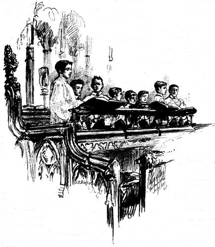 In 1658 was born in London a boy named Henry Purcell. Music seemed to grow with him. When he was very young he was put into the choir school at Westminster Abbey, and it was only the other day I was standing in the old school-room where the boy Purcell sat, and looking at a quaint old picture of him which hangs upon the wall.