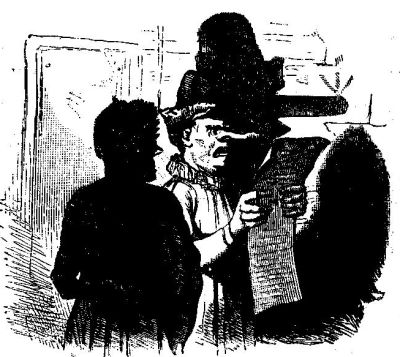 Well, I haven't space to tell you of all the doings in all the days that followed—how Merry, after having obtained his mother's consent to a trial of his project, went to work with Jack Hennessey and one or two other boys; how he soon became well skilled in a few simple sleight-of-hand performances; how Mr. Quipp's place was tidied up, and a little platform arranged at one end, after the Professor's model; how at length the boy public came to understand, by means of an immense placard printed in burnt cork, that Merry Andrew would give an entertainment, to include speeches, recitations, sleight-of-hand tricks, and ventriloquism, in Mr. Quipp's chamber, on the night of April 1; that the admission price would be five cents for boys, and ten cents for grown folks, and that if anybody was not satisfied he should have his money back.