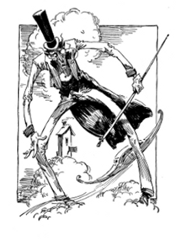 "I wish I could tell you more definitely," said the Wizard ruefully. "But I am as mystified as anyone. Here is all I know: I had ordered the Royal Stables to have the Sawhorse saddled so that I might ride him to the College of Natural History, where I wished to consult some of the books written by Professor Wogglebug. I had placed on the ground my Black Bag of Magic Tools which I needed for some experiments I planned to make at the College. I was about to mount the Sawhorse and pick up the bag when suddenly from out of nowhere, a wild-eyed little man appeared. He gave me one stare, picked up my Black Bag, and dashed into the Palace. I was so startled that it was several moments before I called to him to stop. Then I went dashing into the Palace after him. But the little man was nowhere to be seen. I hurried to Dorothy's rooms and she accompanied me to the throne room. Just as we entered the throne room, the little man whisked past us and was up the tower stairs that lead to my magic workroom."