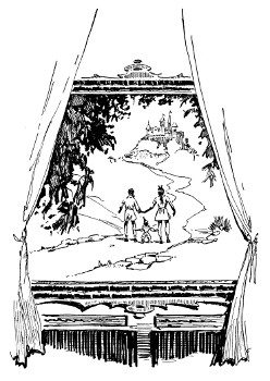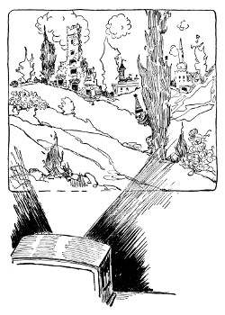 The flickering motion picture vanished from the television screen, and in its place appeared a picture that made the children gasp. It was one of the most beautiful scenes they could imagine: a peaceful, rolling meadowland, bright with all kinds of wild-flowers on which the sun shown down from a blue sky dotted with white, baby clouds. In the distance rose the spires and minarets of a great castle, glittering and glistening in the sunlight.