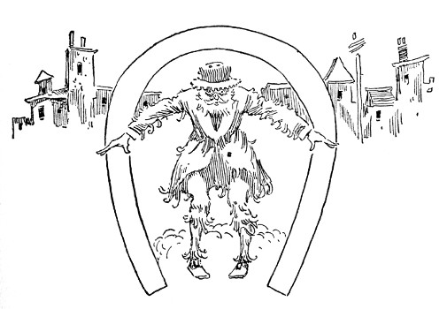 When they reached the gates of the Emerald City, the Shaggy Man ordered the Sawhorse to stop while he, with the aid of Omby Amby, a bright new nail and a hammer, proudly restored the Love Magnet to its position over the entrance to the city.