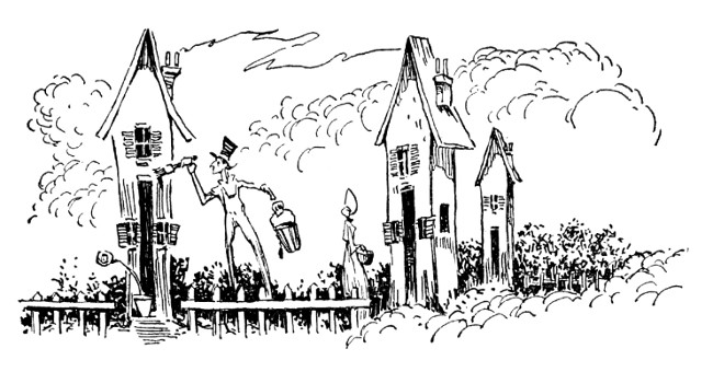 The company then drove out to call on Miss Cuttenclip and her famous village whose inhabitants were artfully cut out of magic paper and moved about and talked like living people. Next they visited Professor Wogglebug in his College, where the students learned their lessons by swallowing sugar-coated pills.