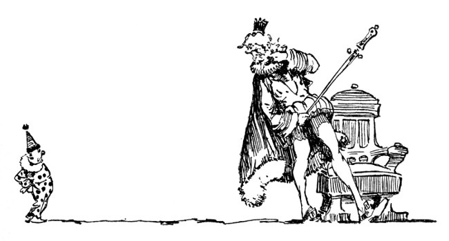 Here Twiffle stepped forward. "Your Highness," the little clown began, "if I may make a suggestion. I have known Conjo longer than anyone else here. He is not really a bad man. His threats are worse than his deeds. Most of the time he is quite jovial and pleasant. He loves his magic and his wizardry and wants to show off. Now that he has a chance to begin all over again, if he learned everything again except vanity and if he had the right guide, I believe it is possible that he might become a good wizard."