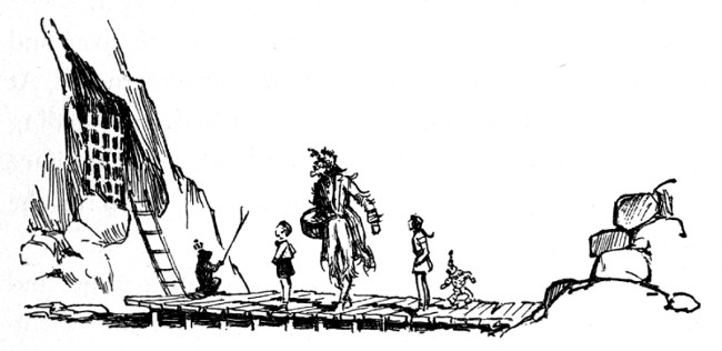 "That's the spirit!" exclaimed the little clown, smiling again. "Just join hands and walk straight toward me."