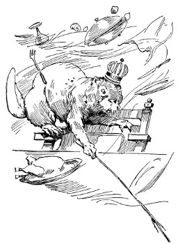 That evening there was a great dinner in honor of Twink, Tom, and the King of the Fairy Beavers. Many of the most famous personages of Oz were there. Among these were the Patchwork Girl, the Tin Woodman who had traveled from his tin castle in the Winkie country for the occasion, Princess Ozana, the Cowardly Lion and the Hungry Tiger, Ojo, Button Bright, Betsy Bobbin, Trot, Cap'n Bill, the Woozy, and many, many others.