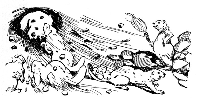 Conjo was about to close the door, when the King of the Fairy Beavers raised his beechwood wand. From the tip of it came a stream of water that played directly on Conjo's face. Conjo gasped and sputtered, opened his mouth to cry out, and the stream of water filled his mouth. He choked and swallowed a large amount of the water. Immediately the stream ceased flowing from the beaver King's wand.