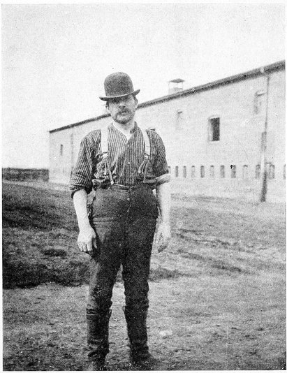 I caught the night boat for Seattle and landed at midnight in my native land after an absence of four hundred and sixty-six days. For two days following I did little but sleep, then set out one evening to “beat my way” eastward, landing in Spokane the second night thereafter. My wages as a seaman being nearly exhausted, I put up at the “Ondawa Workingman’s Inn,” purchased a job at an employment agency, and spent a week “bucking the concrete board” for J. Kennedy, a bustling Irish contractor to whom Spokane is indebted for most of her sidewalks. At the end of that time I turned over another dollar to the employment agency and shipped as a railway laborer to Paola, Montana. The train halted at midnight at the station named, an isolated shanty in a wild mountain gorge; but, having no desire to tramp ten miles across the parched foothills to the camp of the contractor, I went on, like several of the “agency gang,” by the same train—this time crouched on the steps of a Pullman car. My companions dropped off one by one as the night air set their teeth chattering, but I clung to my place until daylight came and the conductor, raising the vestibule floor above my head, invited me to “hit the grit.”