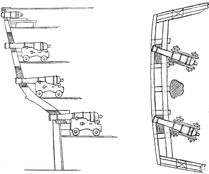 And now, before tracing its evolution through the seventeenth and eighteenth centuries, let us glance at the warship as it existed at the end of the Elizabethan era, and note its chief constructive features.