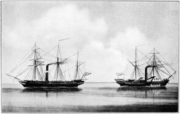 150 The strategic value of steam power in warfare was first demonstrated by Lord John Hay in ’30. In the operations on the North Coast of Spain “the opportune arrival of a reinforcement of fifteen hundred fresh troops from Santander, by one steamer alone, despatched the previous day from San Sebastian, a distance of a hundred miles, for that express purpose, gave a decisive and important turn to the transactions of that day” (Otway: Steam Navigation).