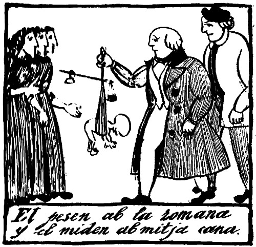 Alguna trovava qu'era massa, i d'altres les més xafarderes, retreien criatures vivents, i filles de la mateixa escala, qu'havien nascut pesant vuit lliures, i vuit i mitja, i fins nou lliures i pico, pero el senyor Ramon no[28] en feia esment. Sabia lo que són les balances.