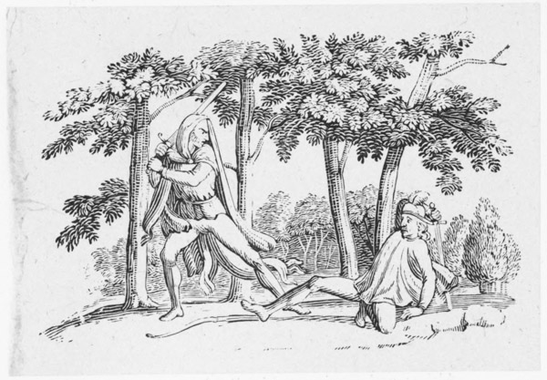A writer in the Gentleman’s Magazine for March 1793, under the signature D. H.,9 pretends that Hood is only a corruption of “o’ th’ wood, q.d. of Sherwood.” This, to be sure, is an absurd conceit; but, if the name were a matter of conjecture, it might be probably enough referred to some particular sort of hood our hero wore by way of distinction or disguise. See Scot’s Discoverie of Witchcraft, 1584, p. 522. In Jonson’s masque of “The king’s entertainment at Welbeck” (Works, 1756, vii. 53), certain characters are introduced “in livery hoods,” of whom Fitz-ale says,