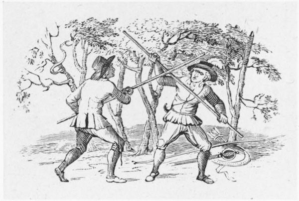 His company, in process of time, consisted of a hundred archers; men, says Major, most skilful in battle, whom four times that number of the boldest fellows durst not attack (11). His manner of recruiting was somewhat singular; for, in the words of an {iv} old writer, “whersoever he hard of any that were of unusual strength and ‘hardines,’ he would desgyse himselfe, and, rather then fayle, go lyke a begger to become acquaynted with them; and, after he had tryed them with fyghting, never give them over tyl he had used means to drawe [them] to lyve after his fashion” (12): a practice of which numerous instances are recorded in the more common and popular songs, where, indeed, he seldom fails to receive a sound beating. In shooting with the long bow, which they chiefly practised, “they excelled all the men of the land; though, as occasion required, they had also other weapons” (13).