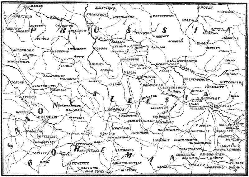 | Frederick’s Motives for the War.—Marriage of William Augustus.—Testimony of Lord Macaulay.—Frederick and his Allies.—Visit to Dresden.—Military Energy.—Charles Albert chosen Emperor.—The Coronation.—Effeminacy of the Saxon Princes.—Disappointment and Vexation of Frederick.—He withdraws in Chagrin.—The Cantonment on the Elbe.—Winter Campaigning.—The Concentration at Chrudim | 295 |