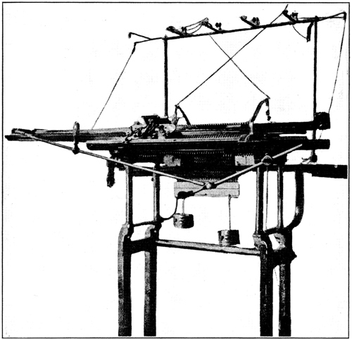 This type of machine was invented in 1863 by Isaac W. Lamb, a clergyman, and was made possible only by the invention of the latch needle in England about 1847. It is very simple in construction in the plain models and is the most versatile of all the knitting machines, it being possible to make on it a larger variety of stitches and articles of apparel than 18on any other machine. It is known as the flat or Lamb type of machine.