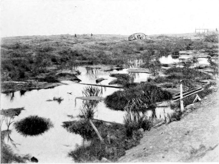 The Germans had progressed so far as to cross the Marne by the 4th of September, and had reached their farthest south position on the Petit Morin, which joins the Marne at La Ferté-sous-Jouarre. On the next day Joffre gave his orders for the commencement of the advance on the 6th, which at one blow turned the much-vaunted advance into a retreat, and postponed for ever the triumphal march of the Emperor through the Arc de Triomphe which was found to have been so elaborately arranged for. The bridge over the Marne at La Ferté-sous-Jouarre—close to which the photograph in Plate 112 was taken—was blown up, and we failed to cross the river until two days later, after which came the great and complex battle which ended with the Germans back to the Aisne. But they still succeeded in holding, and were still to hold for four more years, all the hilly country between Rheims and Verdun, as well as Laon, St. Quentin, Péronne, and Cambrai, and also, for much of that time, the whole Somme region.
