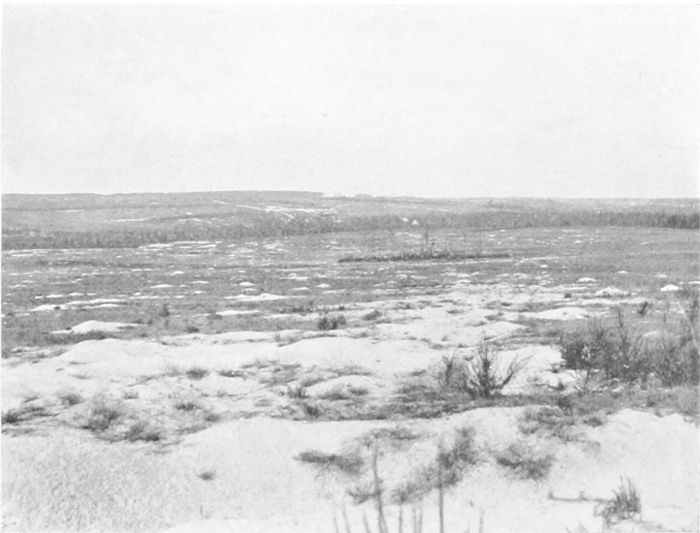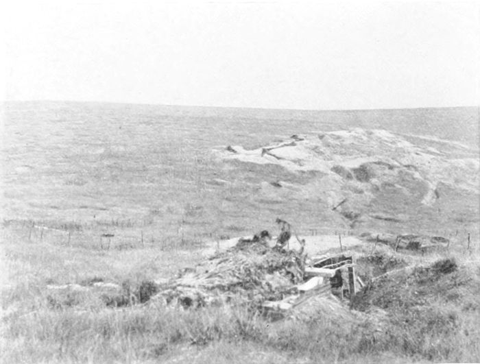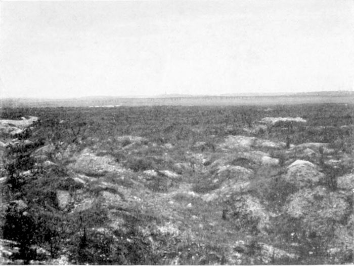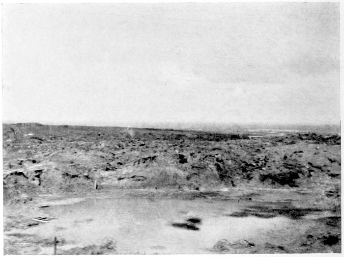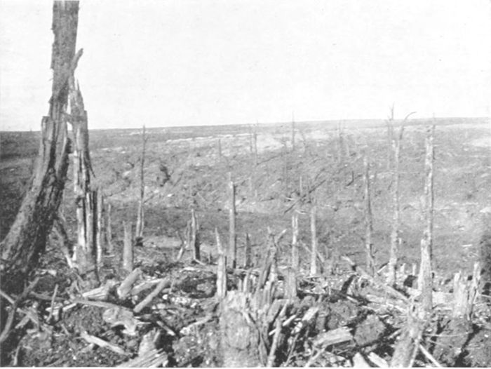 The French front lines on the southern slope of the Mort Homme Ridge. From these ridges the view in all directions seems to cover nothing but shell-pocked wastes, the grave of 400,000 Frenchmen and probably of very many more Germans.