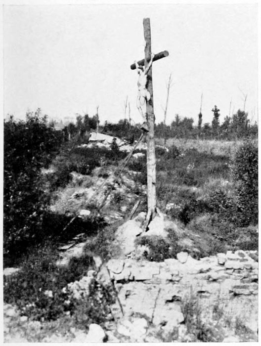 Varennes itself (the little town where Louis XVI. was arrested in 1791 on his attempted flight from France) is very nearly destroyed. The Americans took it on the first day of their advance, when it was defended by a division of Prussian Guards, and on the next day they captured Montfaucon, the headquarters of the Crown Prince for his Verdun attack. The ground here is high, and the Germans had built themselves an excellent O.P. from the materials of the church. Here also, according to General Maurice, the Crown Prince had directed operations from a "palatial dugout."