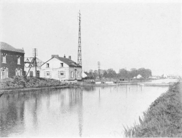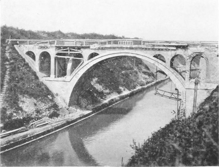 The fortifications of Maubeuge, although of an old type, held a considerable force of Germans back in the advance of 1914. The bridge was, of course, destroyed by the retreating Germans in 1918, and the girder bridge has temporarily replaced it.