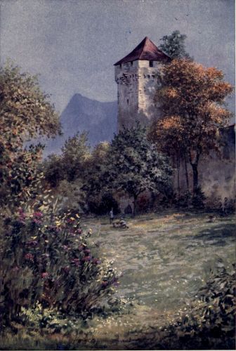 But Lucerne suffers somewhat from the brilliant history of her near neighbours, her precursors in Swiss freedom. William Tell and his famous companions monopolize so much of the atmosphere that the average visitor is probably satisfied if he supplements a knowledge of their exploits with what he can pick up casually in his strolls around the town.[1] In this way, if he finds himself in the Pfistergasse and notices the ancient three-storied building known as “von Moos’s Haus”, he will come into contact with Ruskin,{17} who made of it one of his exquisitely careful drawings; in this way, at the Gütsch, he will learn how Queen Victoria loved the alleys midst the stately pines; in this way he will hear of Richard Wagner’s erstwhile residence for some six prolific years at Tribschen, the country house nestling among Teutonic-looking poplar trees on the promontory not far beyond the airship station, and of how the great man was wont to wend his way of an afternoon to Dubeli’s Café in the Fürren Gasse, where he smoked his pipe and in all probability sought inspiration for Die Meistersinger, the Siegfried Götterdämmerung, and the Siegfried-Idyll, and perhaps discussed philosophy with Nietzche, who was a frequent visitor to Tribschen in those friendly days before he discovered that the great composer was merely a “clever rattlesnake”. In this way, too, the visitor will hear of the droll doings of Fridli an der Halden, popularly known as Bruder Fritschi, who flourished in the fifteenth century and founded a merry festival which, in the shape of the Fritschi Procession, is still kept up at carnival-time. Many tales are told of this worthy. He seems to have been a prime favourite, not only in Lucerne, but far afield, being on several occasions held captive in some distant town.