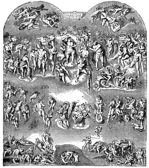 Then in the vast night of space, from the shock of these two mighty bodies was suddenly kindled a stupendous conflagration, and an immense gaseous nebula was formed, which trembled for an instant like a flaring flame, and then sped on into regions unknown. Its temperature was several million degrees. All which here below had been earth, water, air, minerals, plants, atoms; all which had constituted man, his flesh, his palpitating 286heart, his flashing eye, his armed hand, his thinking brain, his entrancing beauty; the victor and the vanquished, the executioner and his victim, and those inferior souls still wearing the fetters of matter,—all were changed into fire. And so with the worlds of Mars, Venus, Jupiter, Saturn, and the rest. It was the resurrection of visible nature. But those superior souls which had acquired immortality continued to live forever in the hierarchy of the invisible psychic universe. The conscious existence of mankind had attained an ideal state. Mankind had passed by transmigration through the worlds to a new life with God, and freed from the burdens of matter, soared with an endless progress in eternal light.